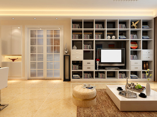 整體體電視柜則可以更好地利用好墻面空間,為了方便美觀,可以根據28原則設置,漏2成,藏8成。這樣的收納空間增加會很多,而且不會影響美觀性。