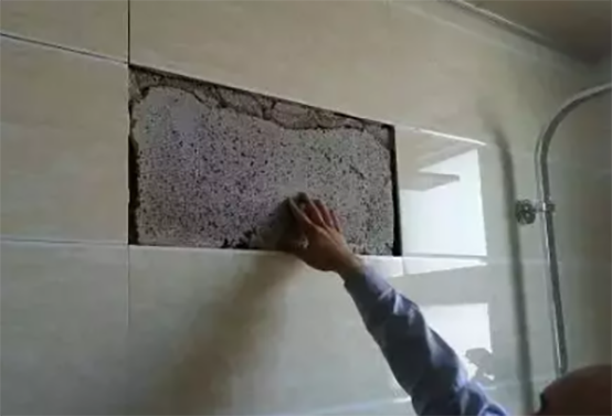 墻基鋪貼前沒有充分濕潤,造成水泥砂漿和磚體里的水被吸走,砂漿在凝固時間內沒有足夠的濕度,無法充分粘結瓷磚。