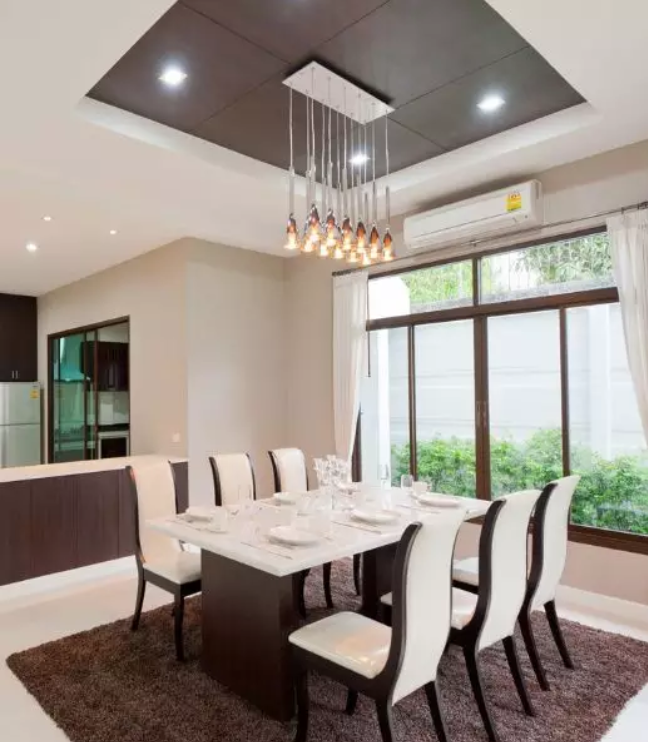 在選擇餐廳吊頂?shù)臅r(shí)候,建議選擇十分容易清潔的扣板材料。餐廳是我們進(jìn)餐的地方,久而久之餐廳吊頂上會(huì)沾一些水蒸氣和油污,時(shí)間長了會(huì)滋生細(xì)菌,所以這里的吊頂易清潔很重要。