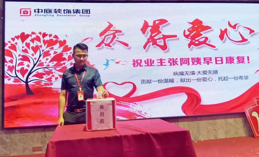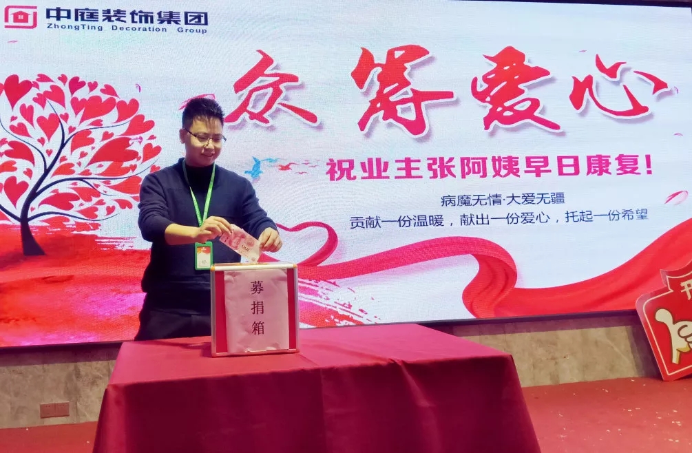中庭裝飾集團黨支部書記張立安向全體員工發起愛心捐款倡議