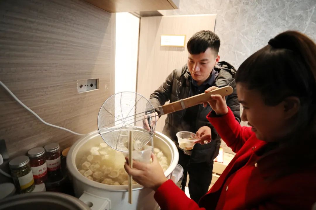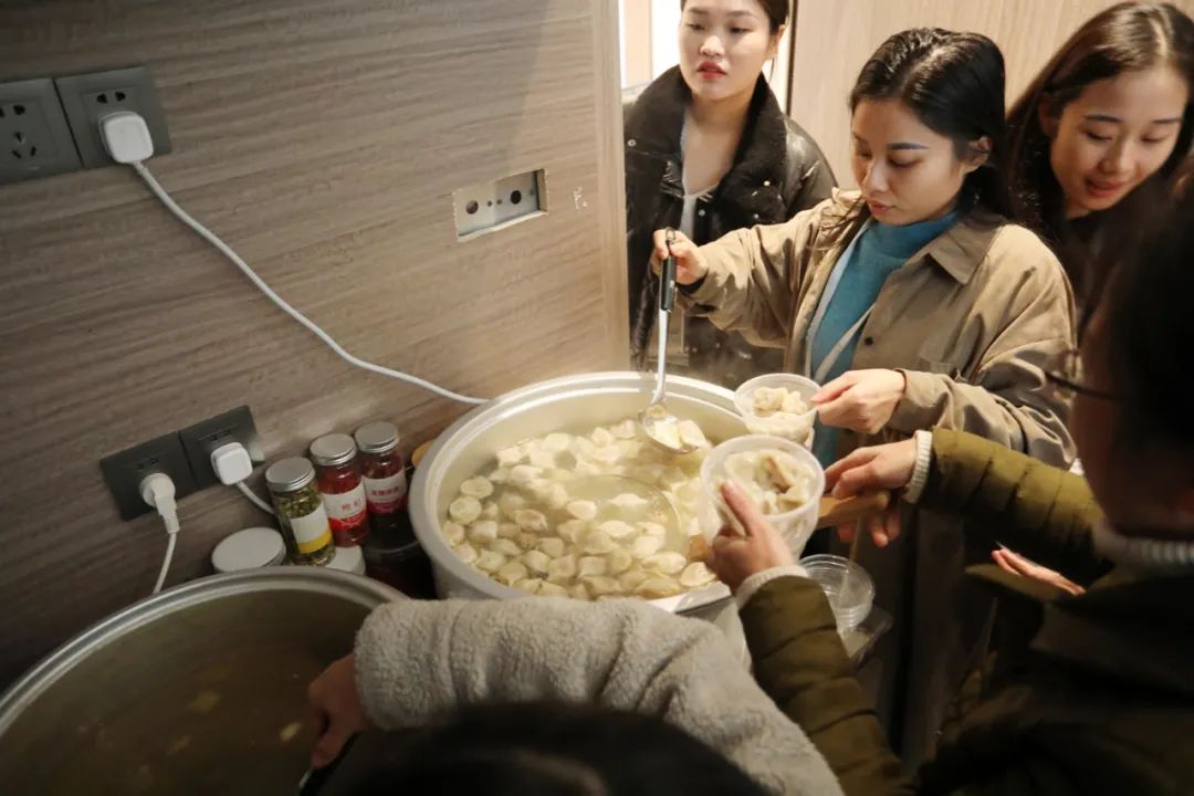 茶水間里煮著餃子湯圓熱氣騰騰,溫暖了寒冬里一顆顆思念故鄉的心。