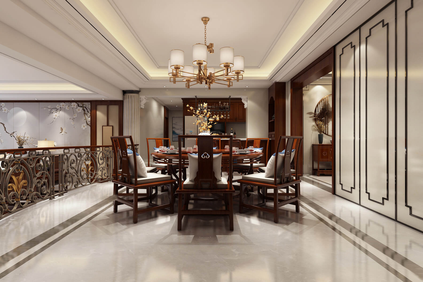 施工面積:150-180㎡| 設計風格:中式風格
