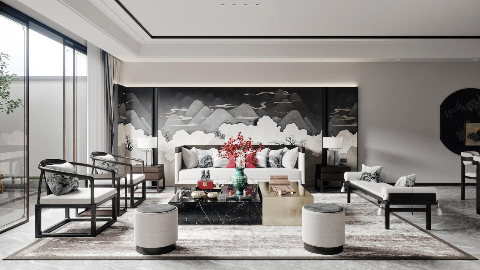 瀏覽量:1138設計師打破了人們對傳統(tǒng)中式風格的固有觀念,加入了許多現(xiàn)代化的設計元素。其中,中國風味一點兒也沒少。山水畫,瓷器,深色桌椅,這些富含古典韻味的裝飾,完美地與現(xiàn)代化的空間融為一體,體現(xiàn)出靜謐的美感。