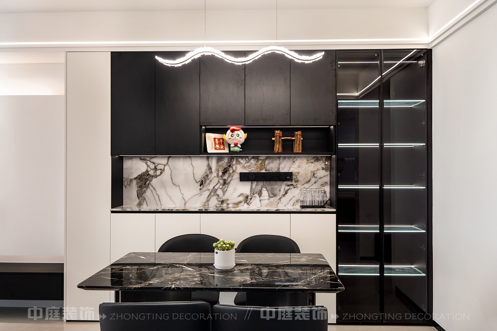 瀏覽量:181整個家以黑、白、灰為主色調(diào),簡約又高級。客廳電視墻的設(shè)計(jì)很有層次,黑白柜體搭配大理石元素,質(zhì)感拉滿;餐廳的黑色大理石餐桌盡顯格調(diào)。玄關(guān)的黑色木門和“喜樂平安”的細(xì)節(jié),又添了幾分溫馨。廚房的灰色系櫥柜實(shí)用又美觀,衛(wèi)生間把洗衣區(qū)和洗漱區(qū)結(jié)合,大理石臺面太顯質(zhì)感了!整體風(fēng)格利落大氣,每一處都透著精致,是現(xiàn)代年輕人都愛的極簡高級感沒錯了~